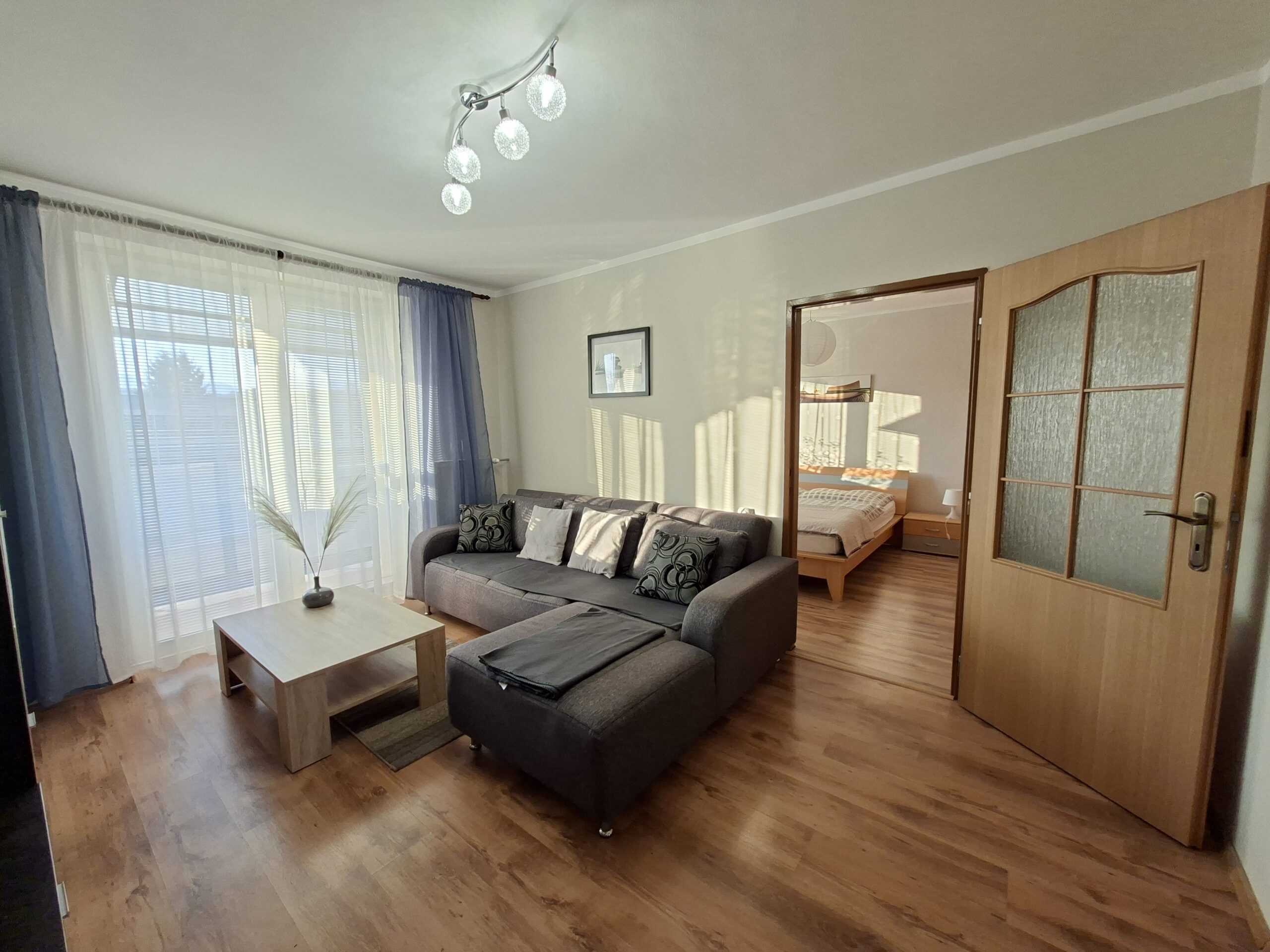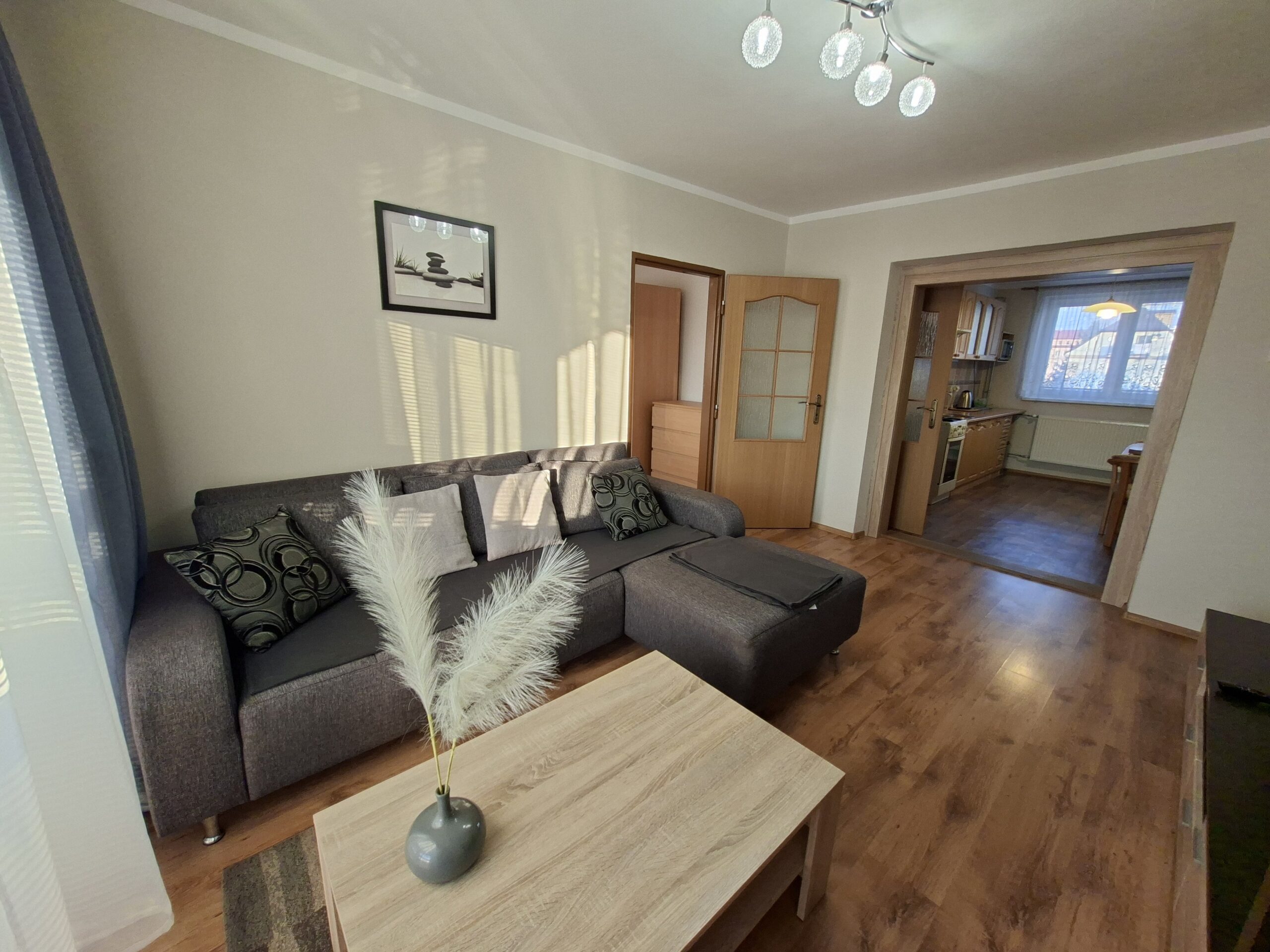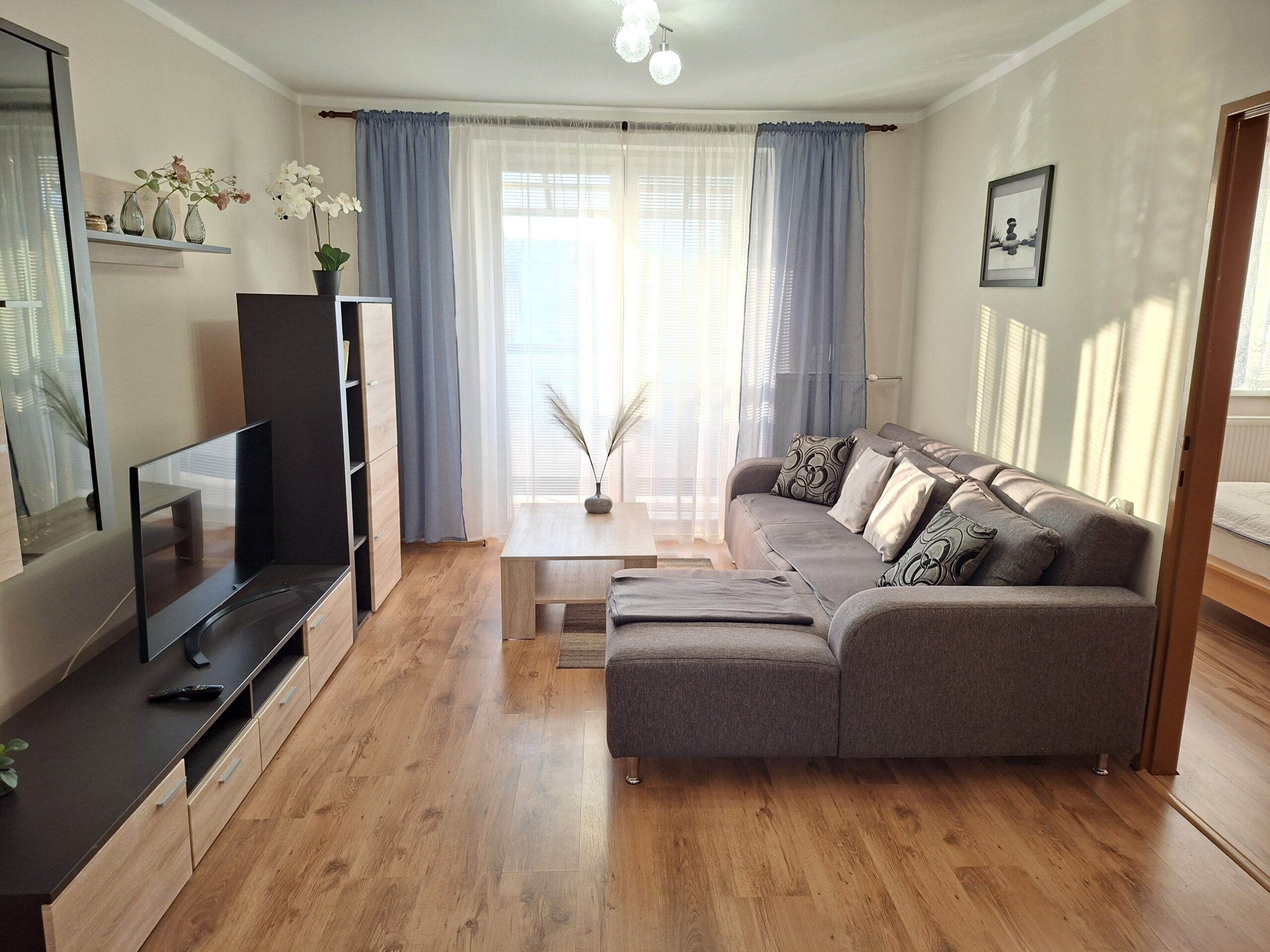 obývačka – obývacia stena s televízorom, sedacia súprava a konferenčný stolík