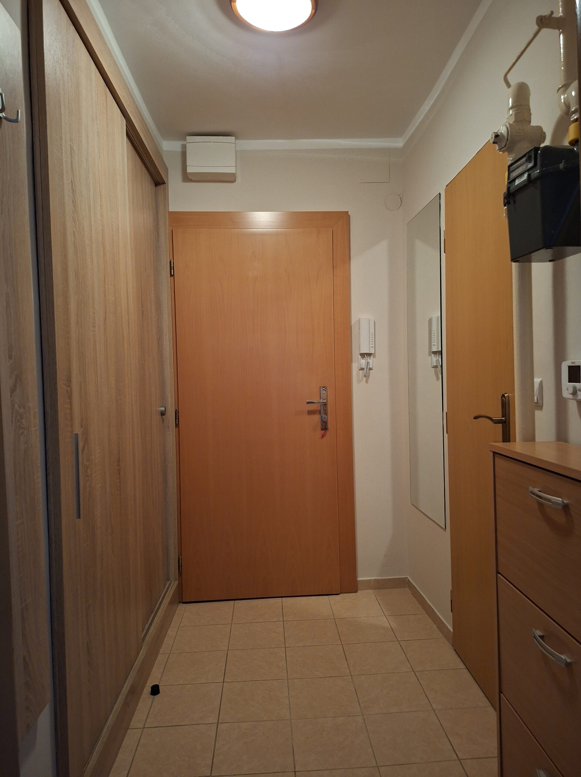 chodba – vstavaná skriňa, zrkadlo, komoda
