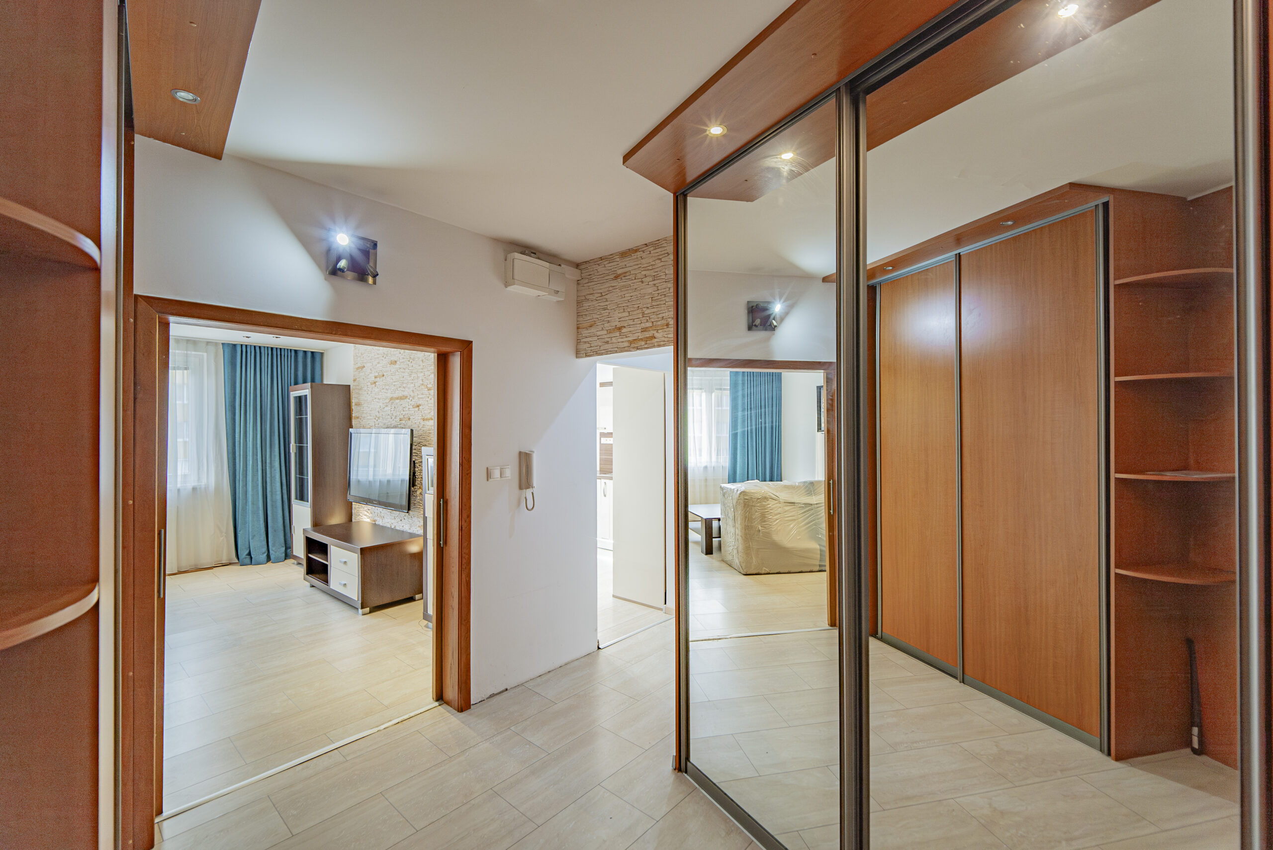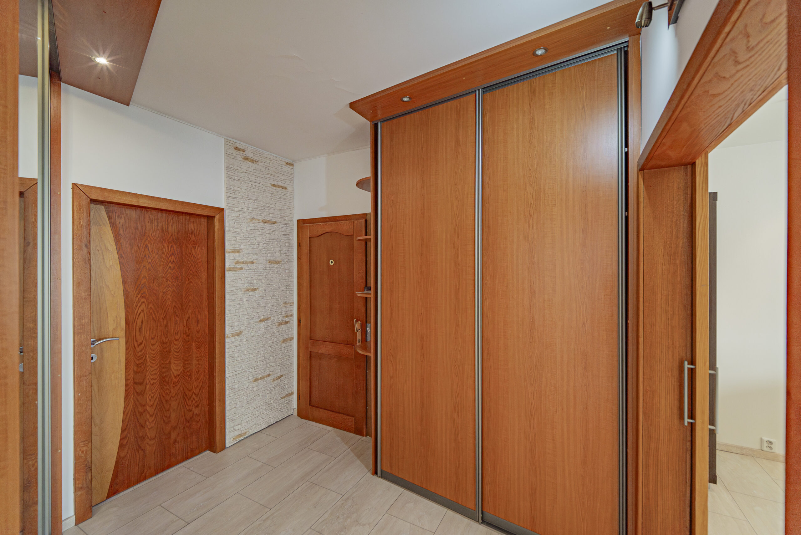 Priestor a úložné riešenia: Byt má rozlohu 72 m² a vďaka množstvu vstavaných skríň na mieru tu nájdete miesto pre všetko, čo potrebujete.