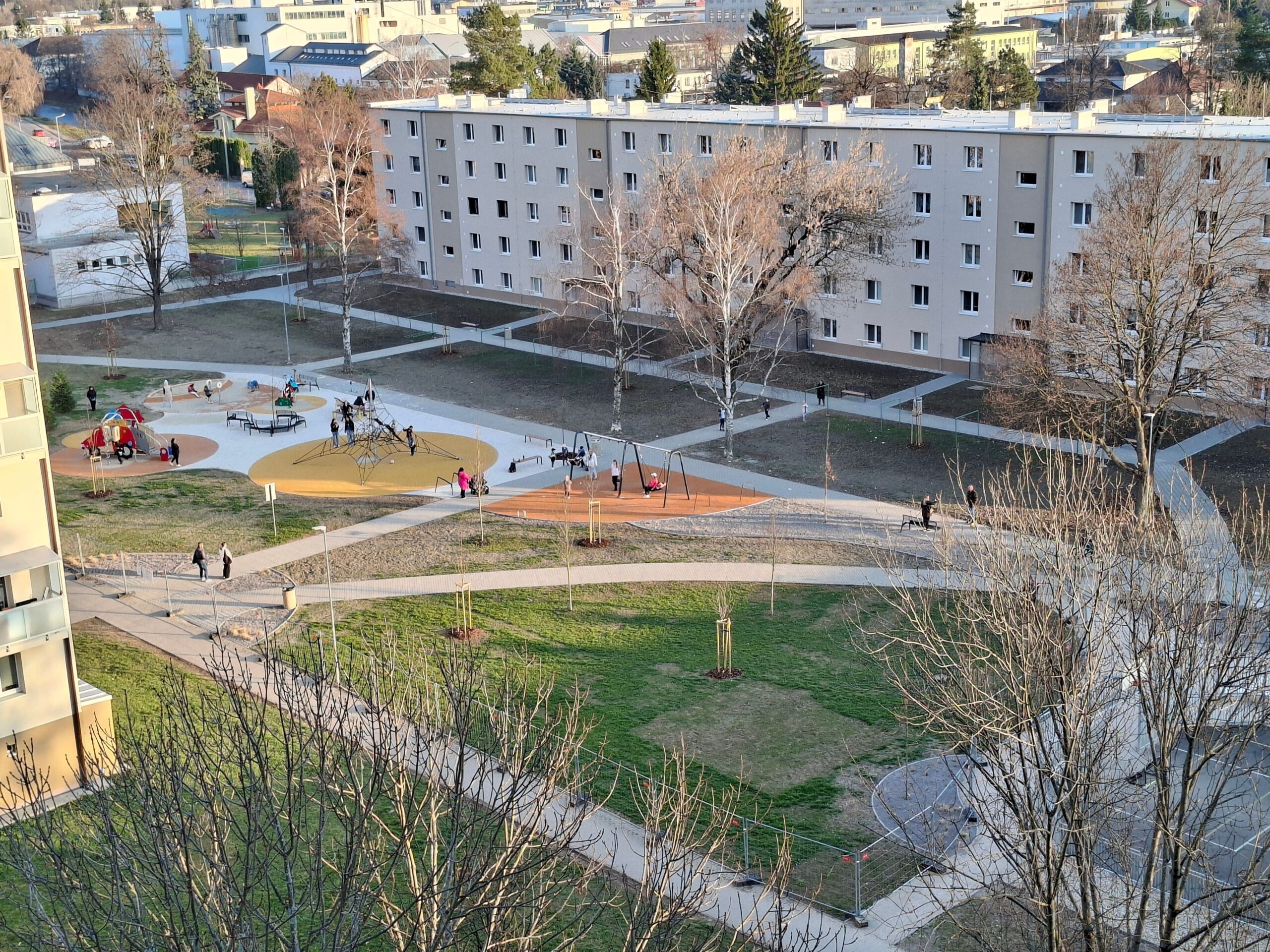 Lokalita – bytový dom sa nachádza v bezprostrednej blízkosti centra mesta, no zároveň v pokojnej časti slepej ulice, obkolesený je zeleňou s novou oddychovou zónou a veľkým detským ihriskom. V tesnej blízkosti je škôlka, škola, potraviny, zastávka MHD, vlaková a autobusová stanica, sieť obchodov a služieb.