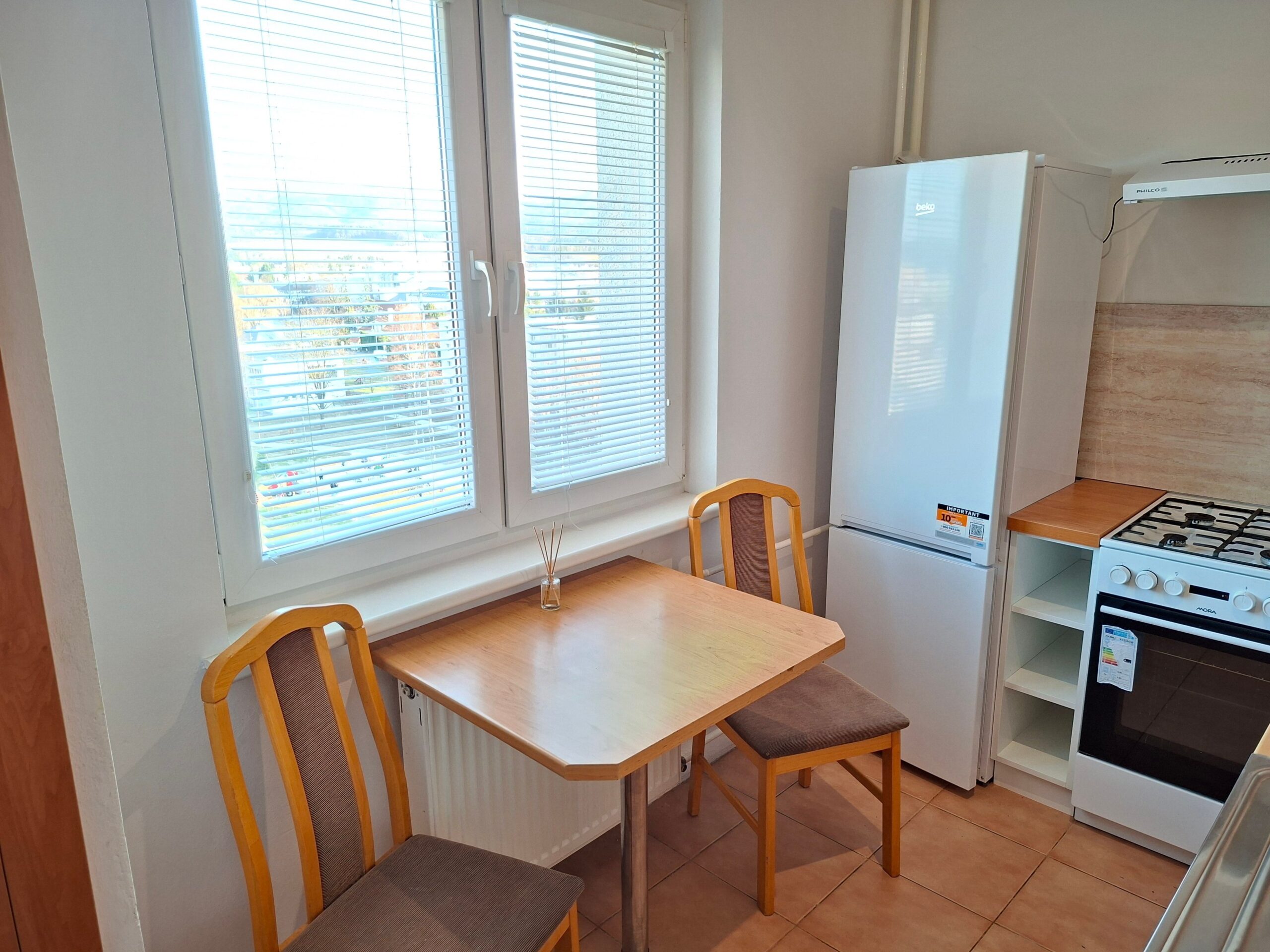 Kuchyňa je vybavená kuchynskou linkou so spotrebičmi, chladničkou, stolom a stoličkami. V kúpeľni je pračka, zvyšná časť bytu je bez zariadenia, v prípade potreby sa byt dozariaďuje,